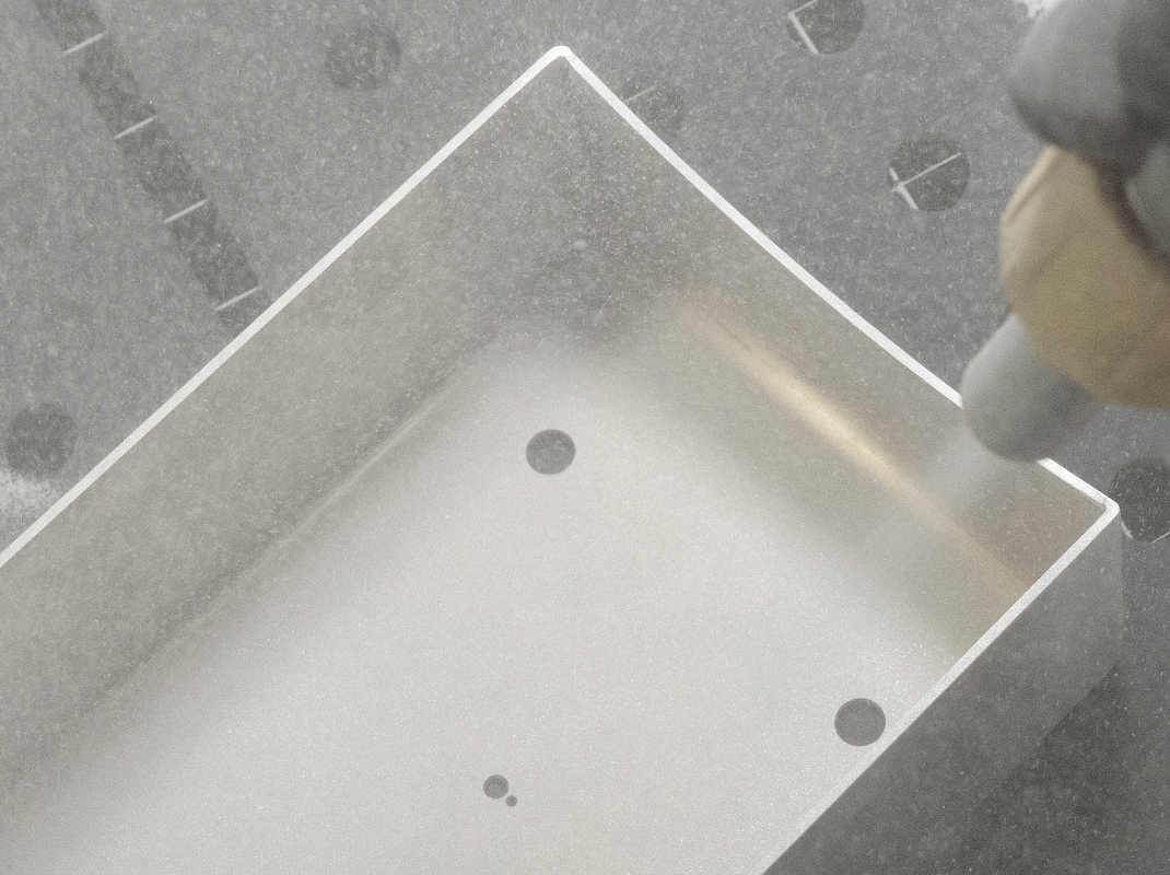 Auf unterschiedlichen Strahlanlagen strahlen wir Aluminium- und Chromstahl-Bauteile mit Edelkorund, Glasperlen oder anderem definierten Strahlgut. Das Strahlen dient zum verdichten, aufrauen, reinigen, aus optischen Gründen oder zur Vorbereitung für weitere Prozessschritte. Dank einer stetigen Prozessverbesserung und der langjährigen Erfahrung unserer Mitarbeiter können wir auch in diesem Bereich unsere Kunden optimal beraten und finden für jede Anwendung die geeignete Methode.